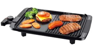 Es decir, debemos precalentar la plancha a la mayor temperatura posible minutos antes de comenzar a cocinar, igual que hacemos con el horno media hora antes de introducir un rico bizcocho. Una vez alcanzada la temperatura, colocamos la carne y reducimos la intensidad de la misma hasta alcanzar una temperatura media con su cómodo termostato en forma de ruleta, de esta forma evitaremos que la carne se queme por fuera.